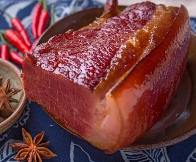 四川臘肉是一道美味可口的漢族名肴全國有名,屬于川菜系,熏好的臘肉,表里一致,煮熟切成片,透明發(fā)亮,色澤鮮艷,黃里透紅,吃起來味道醇香,肥不膩口,瘦不塞牙,不僅風(fēng)味獨特,而且具有開胃、去寒、消食等功能。臘肉從鮮肉加工、制作到存放,肉質(zhì)不變,長期保持香味,還有久放不壞的特點。此肉因系柏枝熏制,故夏季蚊蠅不爬,經(jīng)三伏而不變質(zhì),成為別具一格的地方風(fēng)味食品。